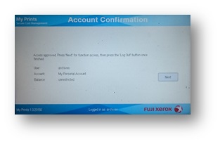 Click on [Use Copier Functions]. This will show you your current account balance. Then click [Next] to see your current account balance.