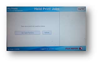 Press [Log in] and you should see a list of all of your print jobs on the screen.